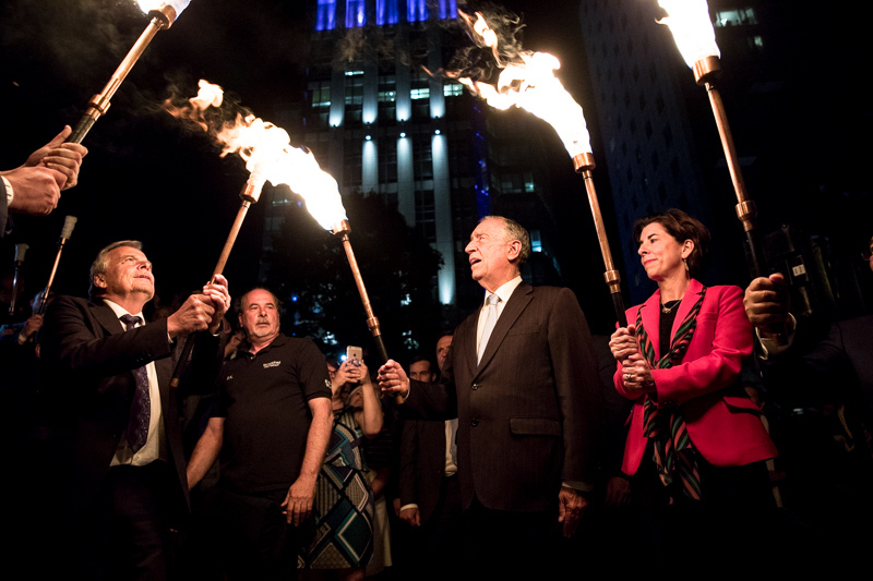 Acompanhado pelo Primeiro-Ministro, António Costa, pela Governadora do Estado de Rhode Island, Gina Raimondo, e pelo Presidente da Comissão Organizadora do Dia de Portugal em Providence, Orlando Mateus, o Presidente Marcelo Rebelo de Sousa participou no Festival WaterFire transportando uma tocha que simboliza o espírito de Portugal.