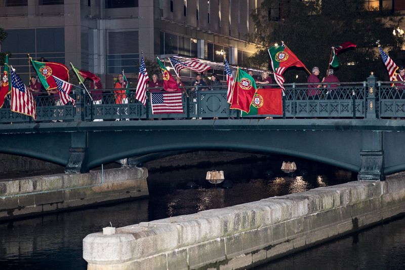 No final do cortejo de tochas, e já no arraial português, todas as tochas juntas acederam a chama da portugalidade. Seguiram-se, após a execução dos Hinos Nacionais, as intervenções do Presidente da Comissão Organizadora do Dia de Portugal em Providence, do Mayor de Providence, Jorge Elorza, que entregou ao Presidente da República a Chave da Cidade, e da Governadora do Estado de Rhode Island, que assinou o decreto que permite a todos os residentes no Estado a obtenção de uma chapa de matrícula com o símbolo de Portugal.