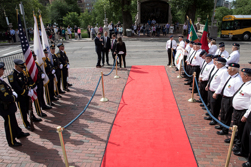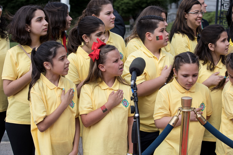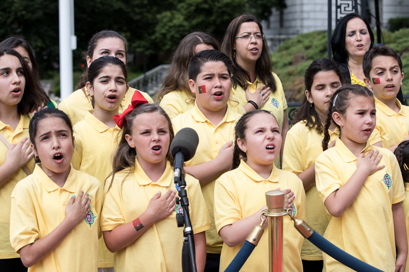 Na entrada da Massachusetts State House foram cantados os Hinos Nacionais dos Estado Unidos da América e de Portugal por alunos luso-americanos.