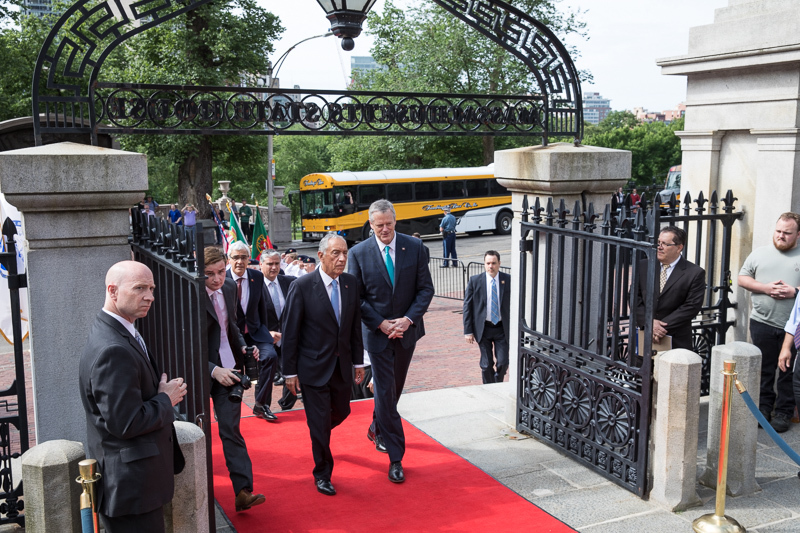 O Presidente Marcelo Rebelo de Sousa foi recebido, na Massachusetts State House em Boston, pelo Governador do Estado, Chalie Parker, numa cerimónia de boas-vindas antes da Sessão Solene comemorativa do Dia de Portugal (“Heritage Day of Portugal”).