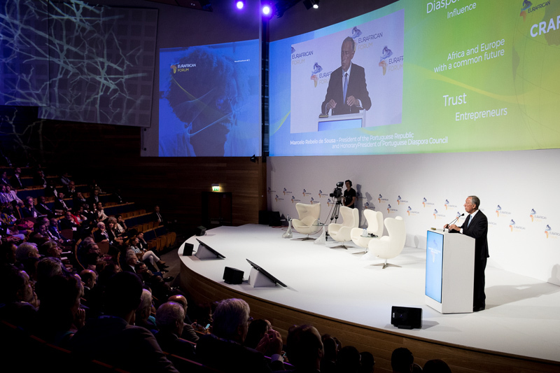 Recebido pelo Presidente da Direção do Conselho da Diáspora Portuguesa, Filipe de Botton, e pelo Chairman do EurAfrican Forum, José Manuel Durão Barroso, o Presidente da República usou da palavra após a intervenção do Chairman do EurAfrican Forum.