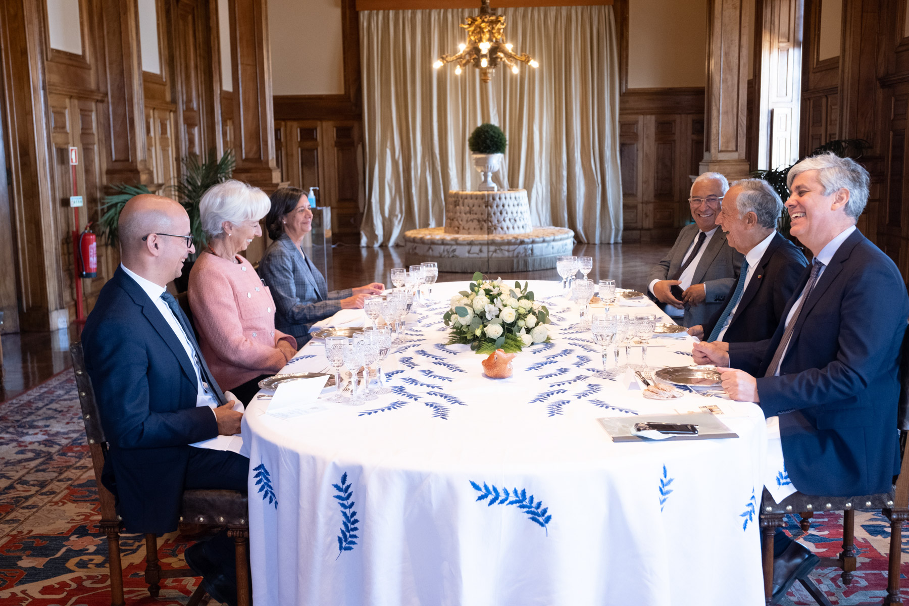 O Presidente da República, após receber a Presidente do BCE na varanda do Palácio da Cidadela, ofereceu um almoço no qual participaram o Primeiro-Ministro, António Costa, o Ministro de Estado e das Finanças, João Leão, o Governador do Banco de Portugal, Mário Centeno, e a Secretária do Conselho de Estado, Rita Magalhães Collaço.