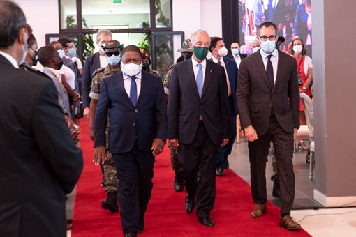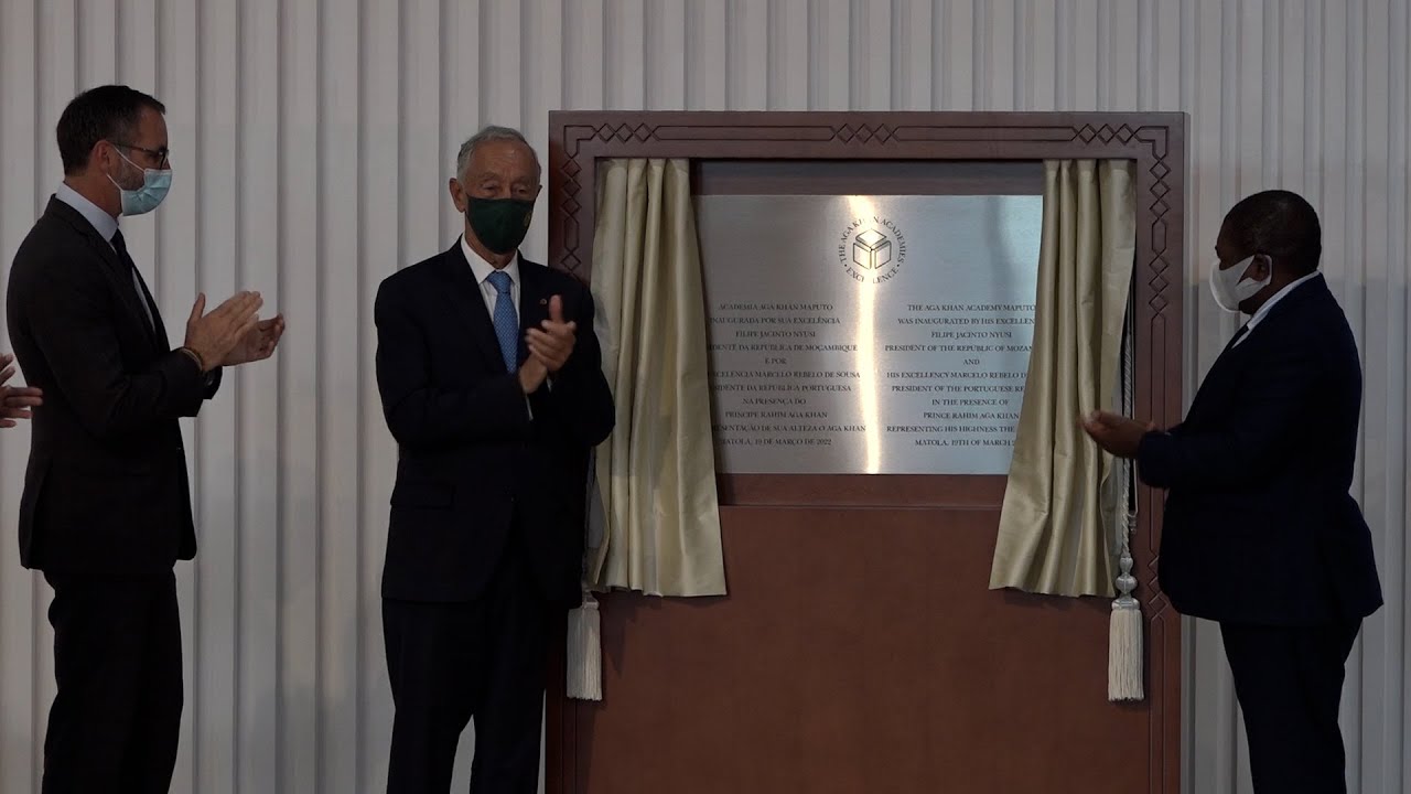 O Presidente da República, acompanhado pelo Presidente da República de Moçambique, Filipe Nyusi, inauguraram a Academia Aga Khan de Maputo, na presença do Príncipe Rahim Aga Khan.
