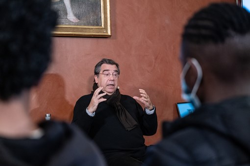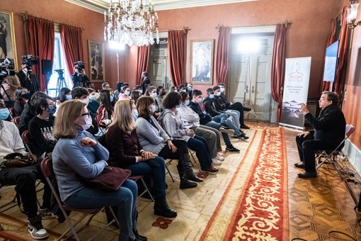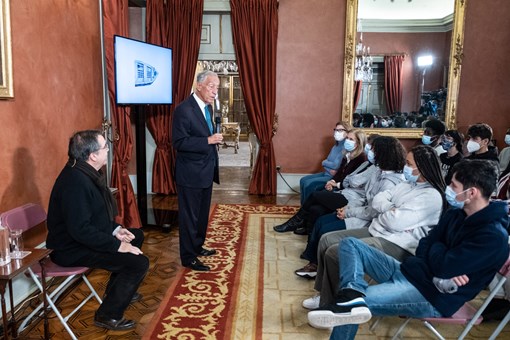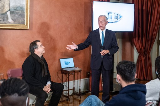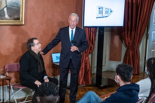 O Presidente da República participou no oitavo encontro do Programa “Artistas no Palácio de Belém”, que teve como convidado o designer e ilustrador Henrique Cayatte, que manteve um diálogo com alunos da Escola Secundária de Sacavém sobre o seu percurso artístico.