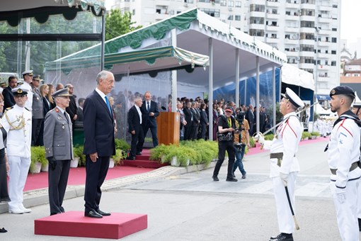 A Cerimónia Militar teve início com a execução do Hino Nacional pela Banda da Armada e, em simultâneo, foi executada uma salva de 21 tiros pelo Regimento de Artilharia N.º 5, tendo, o Presidente da República passado revista às Forças em Parada.