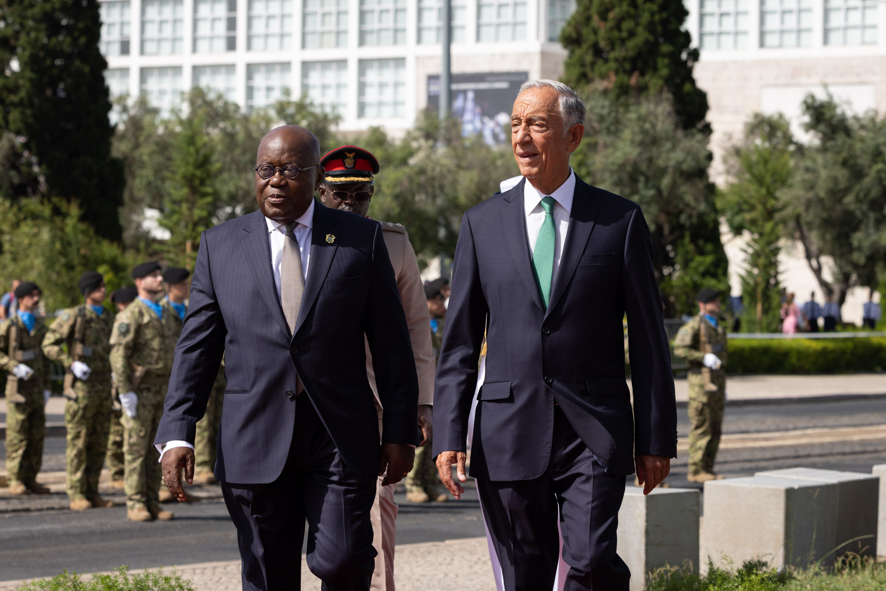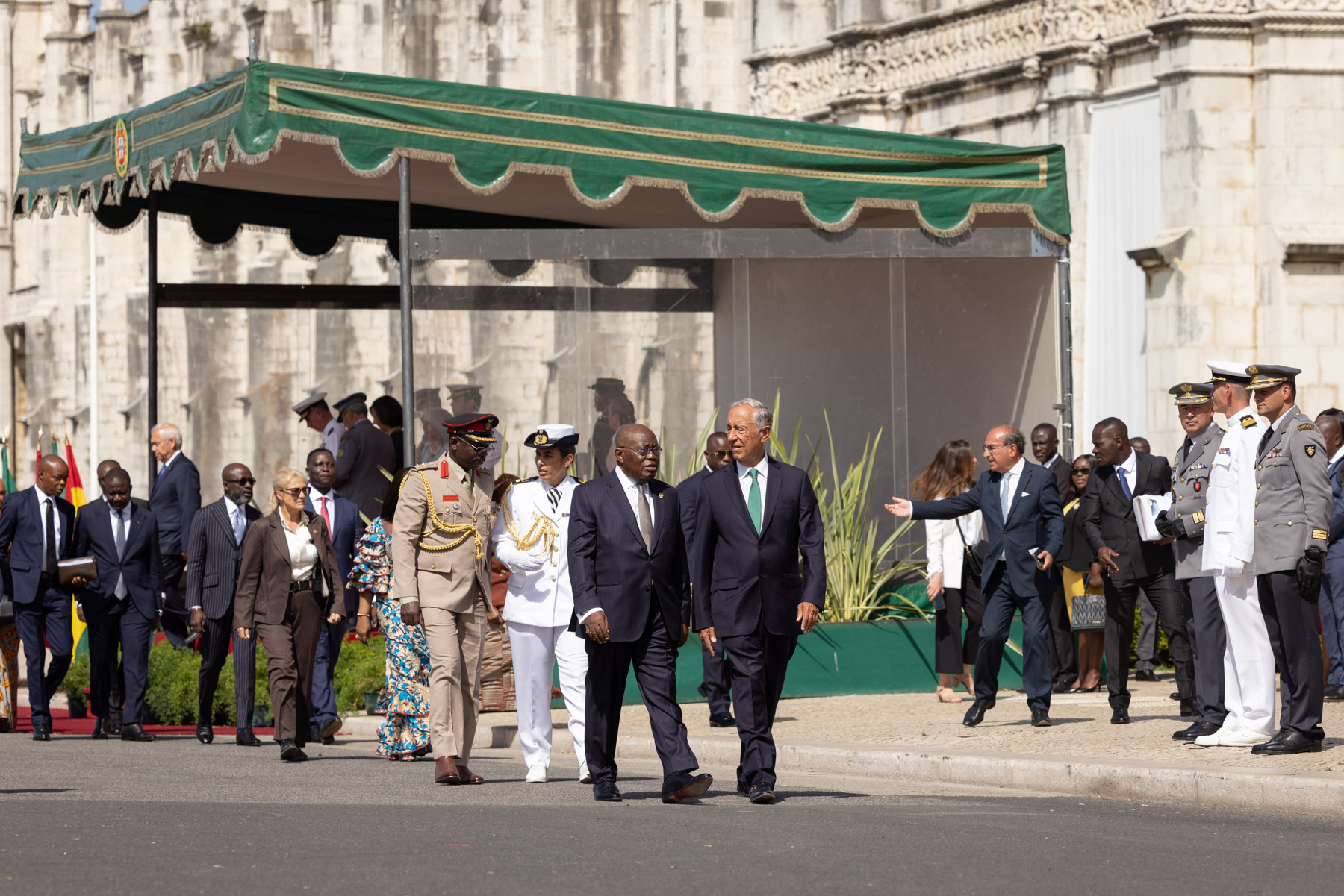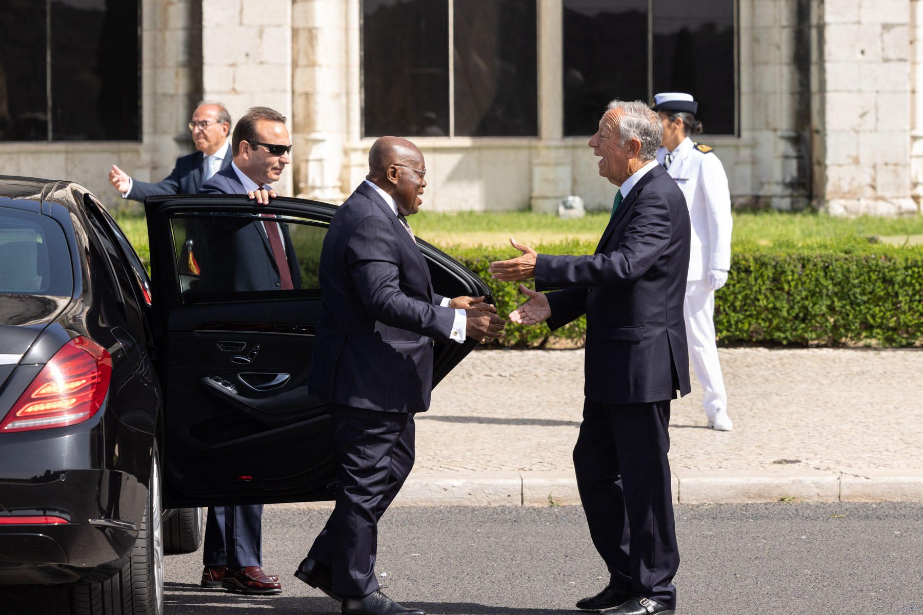 No início da Visita de Estado a Portugal, o Presidente da República do Gana, Nana Addo Dankwa Akufo-Addo, foi recebido pelo Presidente da República na Praça do Império - Mosteiro dos Jerónimos, em Lisboa, numa cerimónia oficial de boas-vindas. Foram prestadas Honras Militares, com a execução dos Hinos Nacionais dos dois países, salva de 21 tiros, revista e desfile da Guarda de Honra.