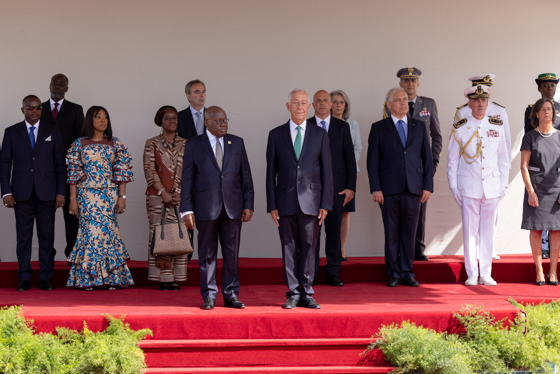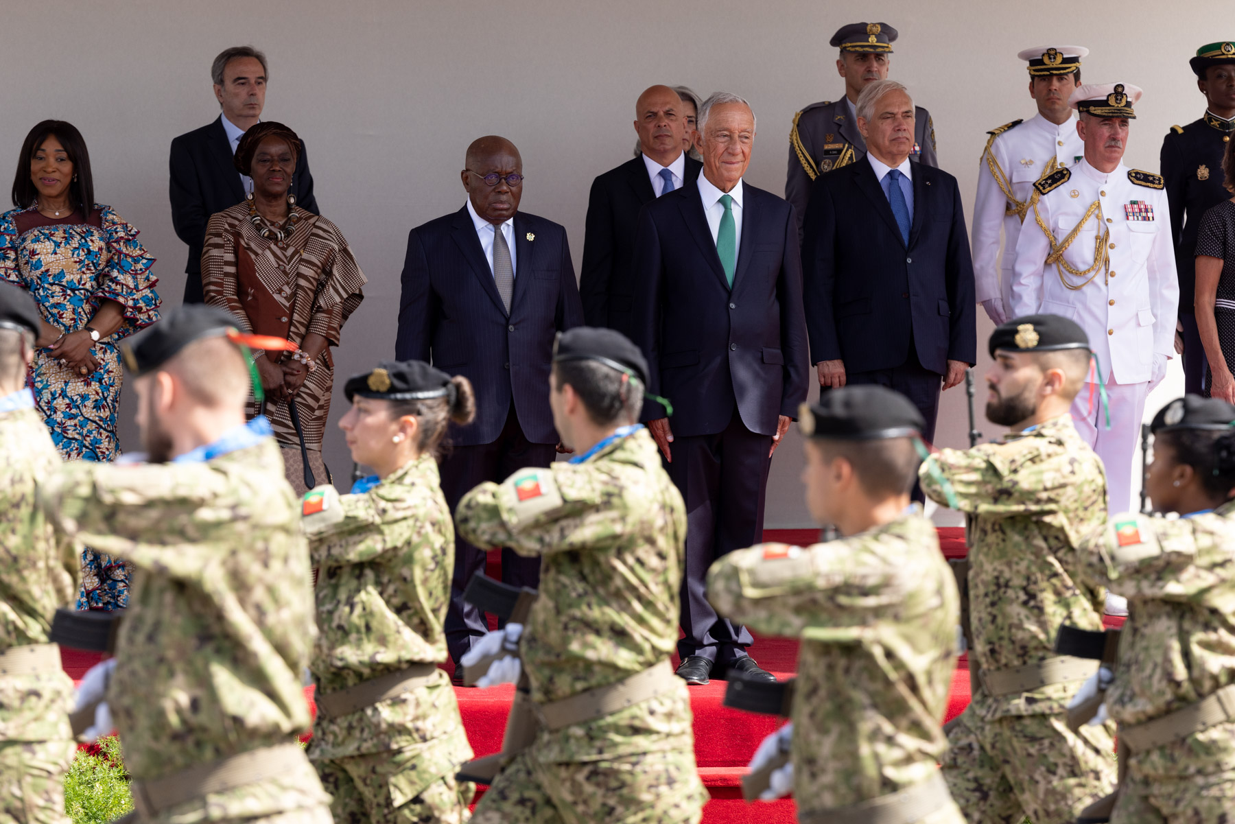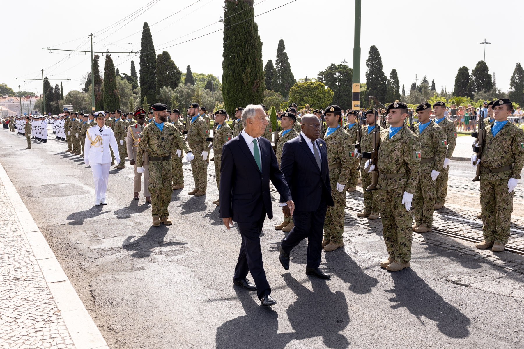 No início da Visita de Estado a Portugal, o Presidente da República do Gana, Nana Addo Dankwa Akufo-Addo, foi recebido pelo Presidente da República na Praça do Império - Mosteiro dos Jerónimos, em Lisboa, numa cerimónia oficial de boas-vindas. Foram prestadas Honras Militares, com a execução dos Hinos Nacionais dos dois países, salva de 21 tiros, revista e desfile da Guarda de Honra.