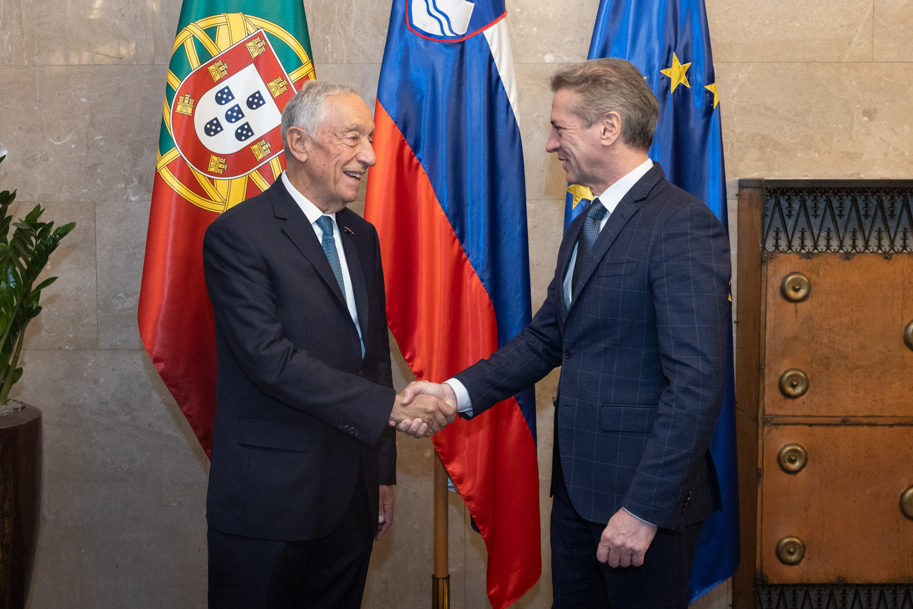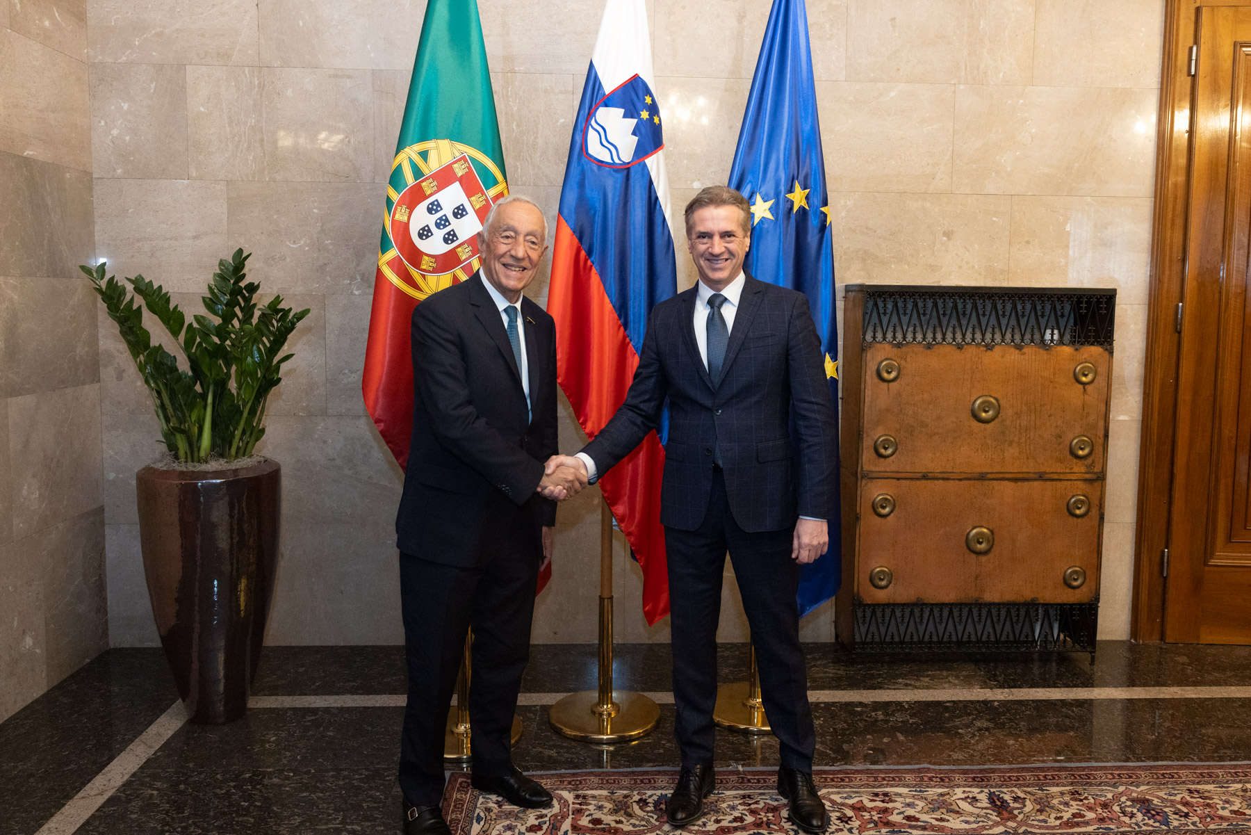 O Presidente da República foi o convidado de honra no almoço de trabalho oferecido pelo Primeiro-Ministro da Eslovénia, Robert Golob, que decorreu na Villa Podroznik.