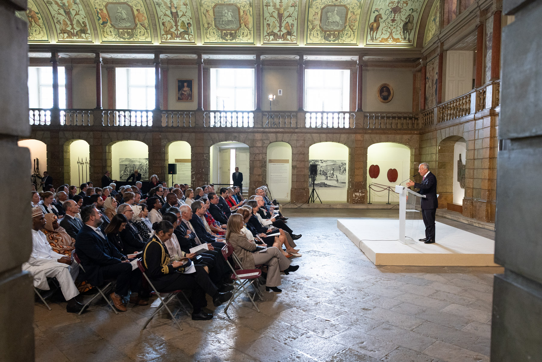 No antigo Picadeiro Real do Museu Nacional dos Coches, o Presidente da República presidiu à cerimónia de entrega dos donativos angariados no Bazar Internacional do Corpo Diplomático, promovido pela Associação das Famílias dos Diplomatas Portugueses (AFDP), em novembro de 2024, a favor de 13 instituições de solidariedade social que prestam apoio à população sénior.