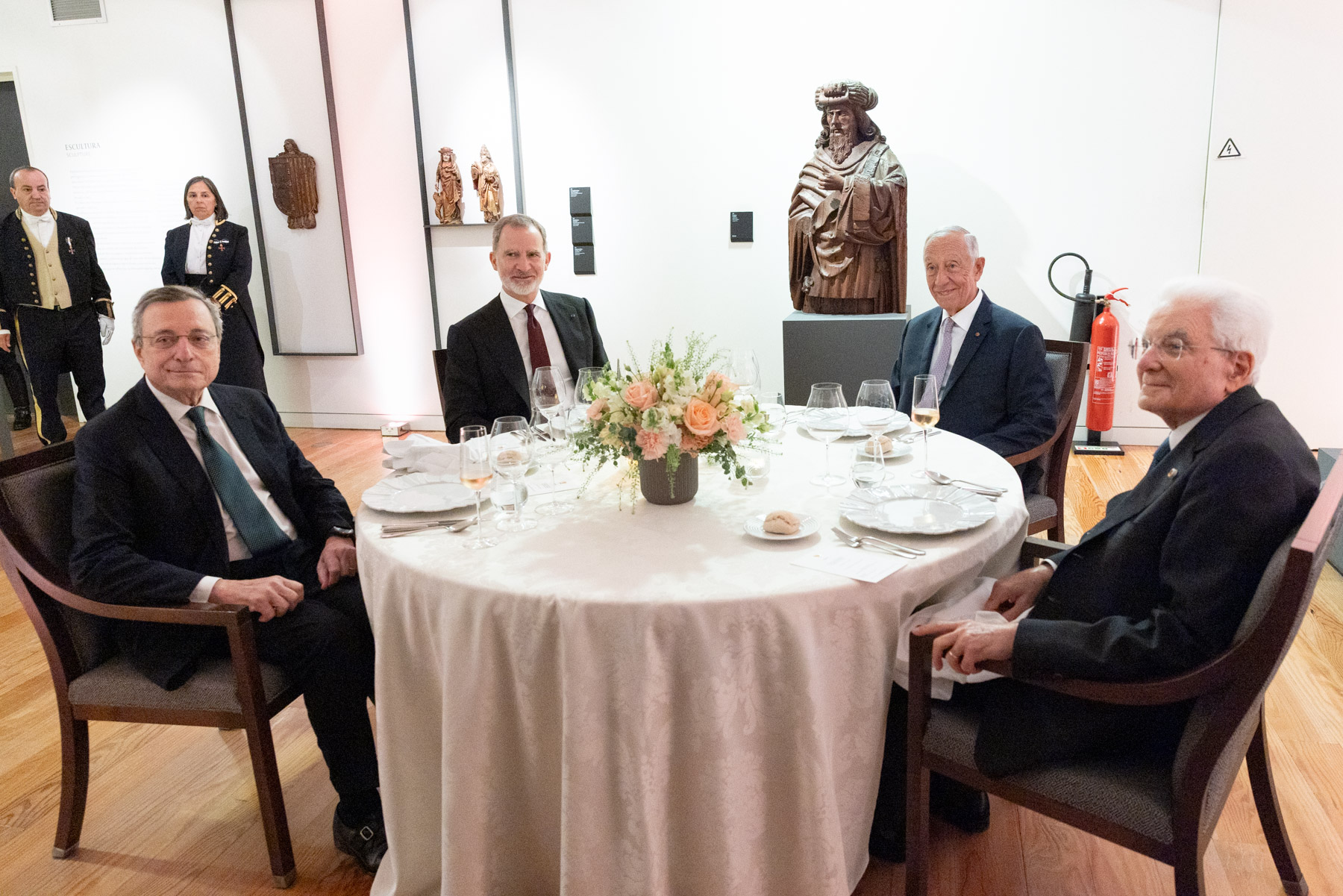 O Presidente da República ofereceu um jantar, no Museu Machado Castro, em Honra do Rei de Espanha, Felipe VI, e do Presidente da República Italiana, Sergio Mattarella, por ocasião da deslocação a Coimbra para a cerimónia de atribuição dos Doutoramentos Honoris Causa e da XVIII Cimeira COTEC Europa.