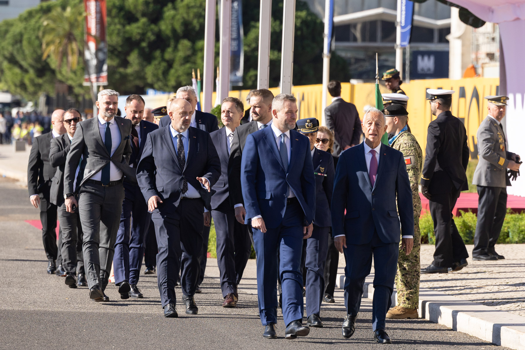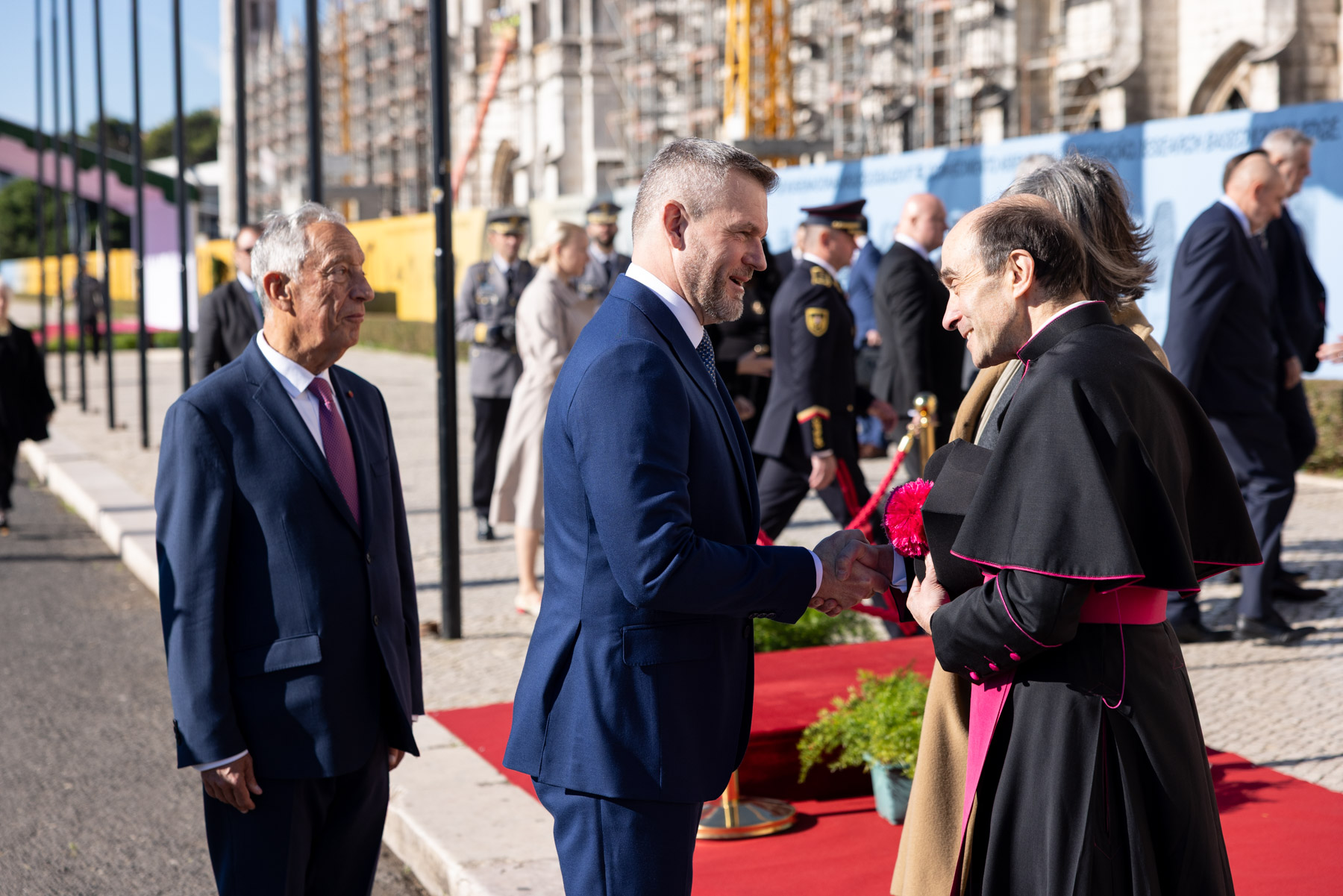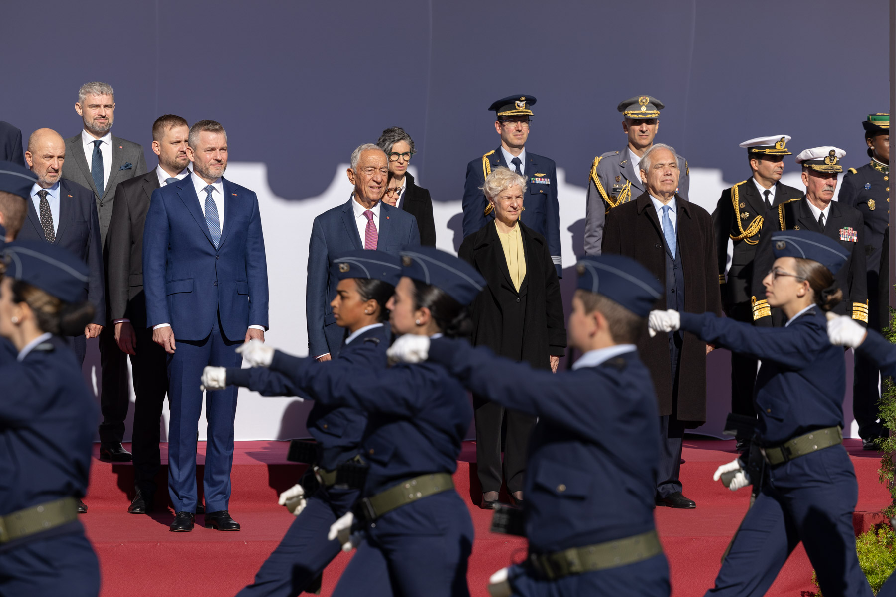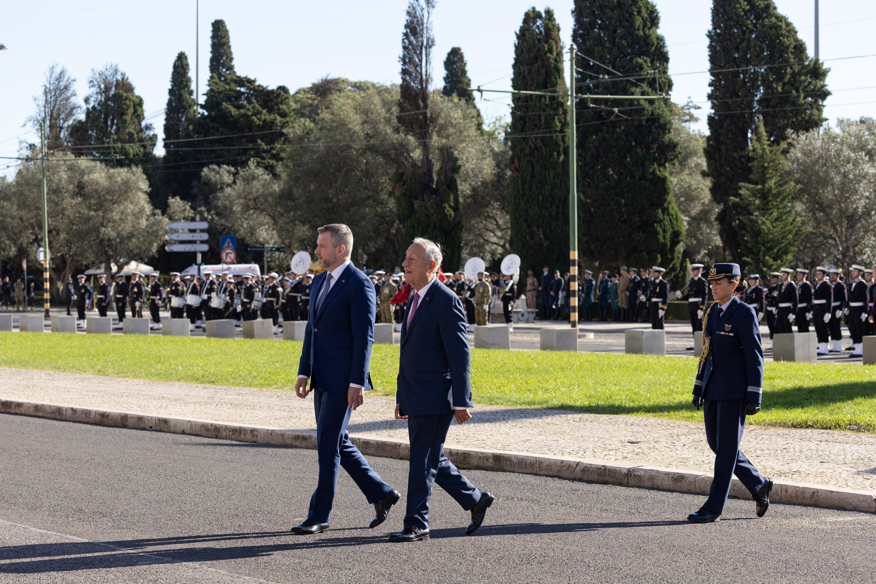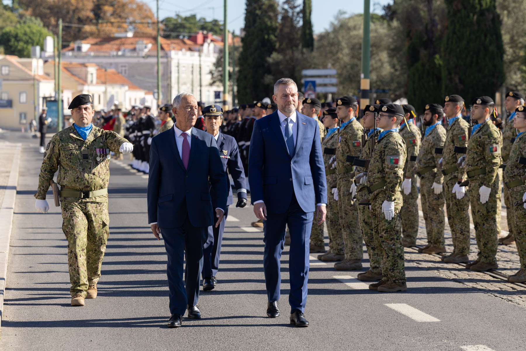 No início da Visita de Estado a Portugal, o Presidente da Eslováquia, Peter Pellegrini, foi recebido pelo Presidente da República na Praça do Império - Mosteiro dos Jerónimos, em Lisboa, numa cerimónia oficial de boas-vindas. Foram prestadas Honras Militares, com a execução dos Hinos Nacionais dos dois países, salva de 21 tiros, revista e desfile da Guarda de Honra.